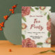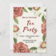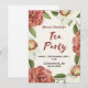 Invitation à la fête du thé aux fleurs rouges, vertes et blanches.