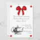 Une belle invitation à la fête du thé ou à la fête d'anniversaire d'une femme. Il présente une photo vintage d'un théier noir et blanc en bas et une image d'un arc rouge en haut. Des graphiques de clous rouges pointent les coins. Très élégant !