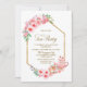Célébrez votre anniversaire et invitation vos amis et les proches à une fête de thé avec cette élégante invitation de fête d'anniversaire dorée géométrique encadrée rose floral. Vous pouvez inclure n'importe quel âge dans le modèle d'invitation.