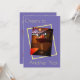 Image d'un cocktail sur fond violet avec impression jaune et détails de la fête au dos.