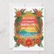 Invitation colorée à une fête reggae avec un coucher de soleil sur une île entouré de fleurs tropicales
