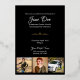 Cette invitation éditable a un arrière - plan noir avec des lettres élégantes en feuille dorée sur le devant. Vous pouvez personnaliser cette invitation avec jusqu'à quatre photos. Pour modifier le lettrage sur le devant de l'invitation, vous devez modifier le lettrage sur le devant et le calque de feuille.