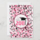 Une invitation unique à la remise des diplômes avec un arrière - plan de peinture noir et rose avec garniture rose chaude. Texte rose et noir. Personnalisez avec les détails de votre propre événement. L'autre côté de l'hôtel est doté d'un revêtement de peinture solide. Texte à l'intérieur d'un cercle rose en forme de cadre dit "Classe de 2011" en rose et noir avec une illustration d'un plafond de graduation noir. Super pour le diplômé de l'école d'art de la mode. Recherchez les articles correspondants dans la section "boutique de diplôme" du magasin The Pink Schoolhouse.