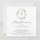 Belles invitations à la première communion avec une feuille verte molle et une croix sur un arrière - plan blanc. Retournez notre invitation pour voir un retour de coordination pour une touche spéciale supplémentaire. Visitez notre boutique pour voir toute notre collection de feuilles.