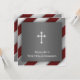 Élégantes bandes diagonales noires, argentées et blanches avec croix blanches première invitation à la communion sainte.