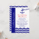 Cette invitation de réception après mariage a un thème nautique et comporte les mots "Réception après mariage" sur la gauche sur une bande bleu marine. Le point focal du design est une jolie ancre bleu marine avec une chaîne de cœur bleu marine qui se dirige vers l'océan (qui est fait de bandes chevron bleu marine et blanc). Vos noms apparaissent en rouge suivis de vos informations de mariage et d'une invitation à une célébration après mariage. Copyright henishouseofpaper