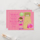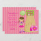 Commencez votre fête avec cet adorable invitation de bowling. C'est pour une partie de bowling de filles. il y a une brune brune au bord d'une piste de bowling avec un sac de bowling rose à côté d'elle. Il est installé sur un arrière - plan rayé rose clair et foncé. Recherchez les nombreux autres produits de cette ligne. ©Jessica Weible Illustrations