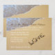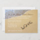 Invitation élégante de réception de mariage sur le thème de la plage, parfaite pour le couple qui s'enfuit ou se marie dans une destination de rêve. L'arrière-plan de l'invitation est réalisé à l'aide d'une photographie d'une plage de sable, avec le mot amour écrit dans le sable. Personnalisez le texte pour répondre à vos besoins.