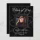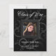 Partagez votre journée spéciale avec notre belle invitation à la graduation photo en noir et blanc. Invitation présente un arrière - plan tourbillon foncé avec un découpage carré pour votre photo de graduation. Remplissez simplement vos informations et ajoutez votre photo. C'est facile et amusant !
