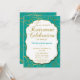 Cette classique invitation à la retraite élégante présente un arrière - plan turquoise avec des tourbillons de couleur or gracieux.