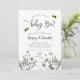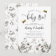 Le sexe Whimsical révèle la carte d'invitation de la fête avec l'aquarelle illustrant une bourde d'abeille et de fleurs sauvages. Le texte dit : "Qu'est-ce que bébé abeille ?"