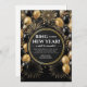 C'est une invitation de soirée du Nouvel An élégante et glamour avec un thème noir et or. Le fond est principalement noir, orné de ballons noirs et or regroupés dans les coins supérieurs et dispersés le long des bords. En arrière-plan, des feux d'artifice dorés et des détails scintillants ajoutent une ambiance de fête. L'élément central est une grande zone circulaire noire avec un contour or fin, contenant les détails de l'événement dans un format élégant et lisible. Entièrement modifiable, téléchargeable instantanément et imprimable via la plateforme Zazzle !