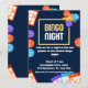 Invitation à la soirée de bingo en blanc et bleu marine.