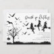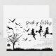 Rejoignez-nous pour une soirée d'Halloween endiablée lors de notre soirée Halloween pour adultes ! Notre thème est « Buvez, sorcières ! » et l'invitation donne le ton parfait avec des silhouettes noires d'un vieil arbre, d'une citrouille, d'une araignée et de chauves-souris volantes. Attention aux trois sorcières sur leurs balais de confiance ! Le modèle d'invitation moderne est posé sur un fond blanc impeccable, ce qui en fait l'invitation parfaite pour une soirée entre filles pour Halloween. Ne manquez pas l'occasion de vous amuser !