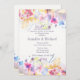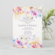 Cette invitation florale colorée présente un large éventail de couleurs et une variété de fleurs dans une bordure de haut et de bas assortis. Convient à toute célébration heureuse.