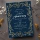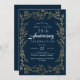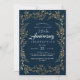 Célébrez avec ce design élégant pour l'anniversaire de la feuille d'or avec un cadre d'élégants feuilles d'or contre un arrière - plan bleu. REMARQUE : L'or figurant sur ces invitations n'est PAS VRAI FOIL et est imprimé en couleurs plates.