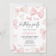 Invitation d'anniversaire avec l'arc coquette rose aquarelle.
