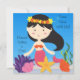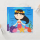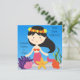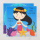 Vous pouvez facilement customiser nos invitations à l'anniversaire de la Sirène de Haired avant de commander avec le nom de votre enfant et les détails de votre fête! Une mignonne sirène aux cheveux noirs, une étoile de mer, des algues et une eau bleu vif font de ce joli invitation à thème de sirène un succès !