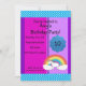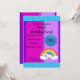 Invitation de 5" x 7" avec mignon arc-en-ciel unicorn rayures rose et violet arrière - plan, avec bande de points polka bleu et blanc et un faux cercle de pétoncle bleu parties scintillant pour changer l'année d'anniversaire pour 1er, 2ème, 3, 4, 5, 6, 7, 8, 9, 10, 11, 12, 13 14, 15, 16, 16, 16, 16, 16, 16 7, 18, 19 20, 30, 40, 50, 60, 70, 80, 90