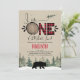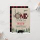 Joli hiver, plaid de buffle ou bûcheron sur le thème de l'invitation à un petit garçon pour le premier anniversaire. Cette conception comprend un ours, des pins, de la neige et un motif de plaid pour buffles et aidera à préparer le terrain pour une prochaine fête d'anniversaire thématique pour la bûcherie.