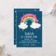 Super mignonne invitation moderne à thème arc-en-ciel pour la fête d'anniversaire de votre enfant.