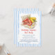 Seafood Boil Invitation Anniversaire - Fête des crevettes côtières Faites votre anniversaire inoubliable avec une ébullition festive de fruits de mer! Cette invitation d'anniversaire combine des rayures rustiques et des illustrations de fruits de mer aquarelles pour une ambiance amusante et côtière. Customisez avec le nom et l’âge de l’invité d’honneur. Idéal pour les anniversaires, les fêtes de famille ou les fêtes balnéaires.