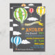 Fun invitation d'anniversaire coloré pour vos enfants. Ballons à air chaud sur le arrière - plan en damier. Le temps vole quand tu t'amuses !
