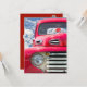 Camion rouge vif avec des dés fuzzy rouge et ciel d'été pour l'invitation d'anniversaire.