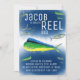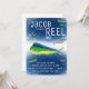 Invitation à l'anniversaire de la pêche hauturière à la main, parfaite pour votre enfant aventureux en plein air.