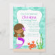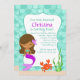 Commencez votre fête d'anniversaire avec notre mignonne invitation d'anniversaire de sirène mettant en vedette la plus mignonne sirène africaine d'Amérique nageant sous l'eau avec un mignon petit crabe. La coordination avec une sirène et des coquillages est la touche finale parfaite pour les invitations à cette fête anniversaire de enfant. Une invitation parfaite pour la petite fête de natation de votre mignonne sirène. Personnalisez simplement vos informations et vous êtes tous prêts à partir ! Des articles de correspondance tels que timbres-poste d'anniversaire, autocollants de faveur, cartes de remerciements et autocollants de remerciement sont également disponibles dans notre boutique. ©Corazón Dulce