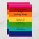 Invitation à l'anniversaire de l'arc-en-ciel avec motif arc-en-ciel rose, rouge, orange, jaune, vert, bleu et violet
