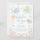 Oneder The Sea - Une mignonne invitation de 1er anniversaire d'animal sous-marin sur le thème de l'eau de mer animaux - Baleine, tortue, méduse, poulpe, poisson, crabes. L'invitation parfaite pour la première fête d'anniversaire de votre garçon.
