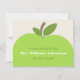 Une simple invitation ouverte pour les enseignants avec une illustration surdimensionnée d'une pomme verte à l'avant et à l'arrière. Personnalisez le texte blanc et vert avec les détails de votre occasion.