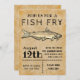 Rejoignez-nous pour un POISSON FRY ! Inscrivez votre date et vos informations. Papier vintage pour poisson-chat arrière - plan et bleu dessiné par l'artiste ©Tina Hesskew de Fishing Hunting Life.