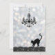 Un corbeau noir et un lustre sur un arrière - plan d'argent brillant donnent à cette Invitation de fête d'Halloween un look moderne, tendance et sinistre ; encore renforcé par le chat noir et la dentelle sur le dos.
