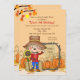 Un délicieux, invitation de chute qui est douce pour une célébration d'anniversaire à la ferme de citrouille. Elle comporte un épouvantail mignon tenant un tournesol qui est entouré avec des tiges de citrouilles, de foin et de maïs.