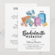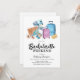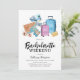 Cartes d'invitation de fête d'enterrement de vie de jeune fille avec une sélection d'objets de voyage à l'aquarelle, notamment des valises, un appareil photo, une carte, etc., et un modèle d'enterrement de vie de jeune fille élégant facile à personnaliser. L'itinéraire du week-end est au verso !