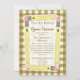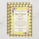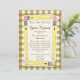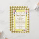 Une invitation avec un arrière - plan brun en vichy à l'avant et à l'arrière. L'avant présente des crayons jaunes disposés en rectangle avec un centre blanc. Personnalisez avec le nom de l'enseignant, le grade, l'emplacement et la date de l'orientation de l'école à domicile.