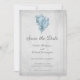 Élégante et simple invitation à sauver la date de mariage avec une coquille conque vintage sur un fond gris grunge. Ce design est un choix unique pour annoncer un mariage moderne. Facile à personnaliser avec vos détails de mariage. Cliquez sur "Personnaliser" pour trouver plus d'options de personnalisation.