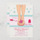 Une charmante invitation pour une journée au spa pour célébrer un anniversaire spécial ou une sortie entre filles avant le mariage. La carte présente des pieds avec du vernis à ongles rouge et une bordure festonnée sur un fond floral. (FP)