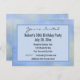 Vous êtes invités. La collection Palo Verde est un motif abstrait décontracté bleu clair et jaune, approprié pour les anniversaires, mariages, anniversaires de mariage, baby showers, événements de Pâques, fêtes d'été, ou toute autre occasion. Description du design : le fond des deux côtés est une photographie d'un motif abstrait bleu clair et jaune, créé par les branches et les fleurs du Palo Verde, un arbre populaire du sud de la Californie, sur un ciel bleu. Le côté avant est recouvert d'un rectangle. Les bordures du rectangle sont d'un bleu clair du fond, l'intérieur du rectangle est également d'une couleur bleu plus clair prise dans le fond. Sur le devant, des modèles pour votre événement, y compris un en-tête "Vous êtes invités" en police de caractères script, les détails du nom de l'événement, date, lieu, adresse, ville, informations de contact RSVP, et une ligne pour le texte