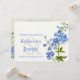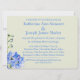 Belles pointes de delphinium peint faire-part de mariage botanique d'art bleu. Modifiez ce faire-part de mariage avec votre propre nom, les détails de l'événement et le libellé. Design unique et peinture d'aquarelle originale de Sarah Trett. www.sarahtrett.com pour www.mylittleedenweddings.com