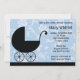 Cette mignonne invitation à une Baby Shower n'attend plus que vos détails personnalisés. Ce design moderne bleu et noir présente une poussette et un motif floral.
