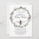 Une invitation unique pour une baby shower sur le thème de la maman abeille, avec des abeilles et une couronne florale de eucalyptus et de coton botanique. Motif en nid d'abeille au verso de l'invitation.