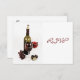 Invitation à une célébration de dîner au vin et au fromage avec un cadre élégant mais décontracté avec une bouteille de vin, un verre à vin, des figues et des raisins.