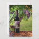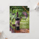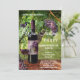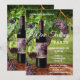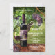 Une invitation élégante à une soirée de dégustation de vins présentant une bouteille de vin, des raisins et un verre à vin dans un cadre de vignoble. Beau pour promouvoir une dégustation de vins ou pour une célébration.