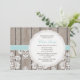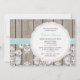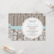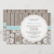 Les invitations à la douche nuptiale en ruban et dentelle rustique avec une clôture en bois imprimée, une tête à ongles, une coquille d'oeuf légère, un oeuf de robin, un ruban bleu d'aqua, du grain de bois et un arrière - plan ancien en dentelle damasée sont parfaites pour un wedding shower vintage à thème de ferme ou de campagne. Créé et réalisé par Chrissy H. Studios, LLC.Tous droits réservés.