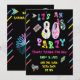 Faites la fête comme en 1988 ! Cette invitation de fête rétro est une célébration des années 80. Toutes les couleurs tape-à-l'œil sur fond noir.