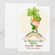 Une invitation à une fête de la Saint-Patrick joyeuse avec un petit lutin attachant tenant un trèfle à quatre feuilles chanceux au-dessus d'un arc-en-ciel doux et de nuages. Conçu dans un style aquarelle ludique avec des tons de vert frais, cette illustration est parfaite pour les fêtes sur le thème irlandais, les célébrations pour enfants, les événements familiaux et les rassemblements festifs de la Saint-Patrick.