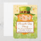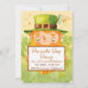 Une invitation à une fête de la Saint-Patrick charmante et joyeuse avec un adorable lutin tenant un panneau festif, entouré de douces trèfles vertes et de textures d'aquarelle chaudes. Parfait pour les fêtes sur le thème irlandais, les célébrations familiales, les événements de pub ou les rassemblements de la Saint-Patrick. Ce design charmant ajoute une touche amusante et chanceuse à toute célébration.
